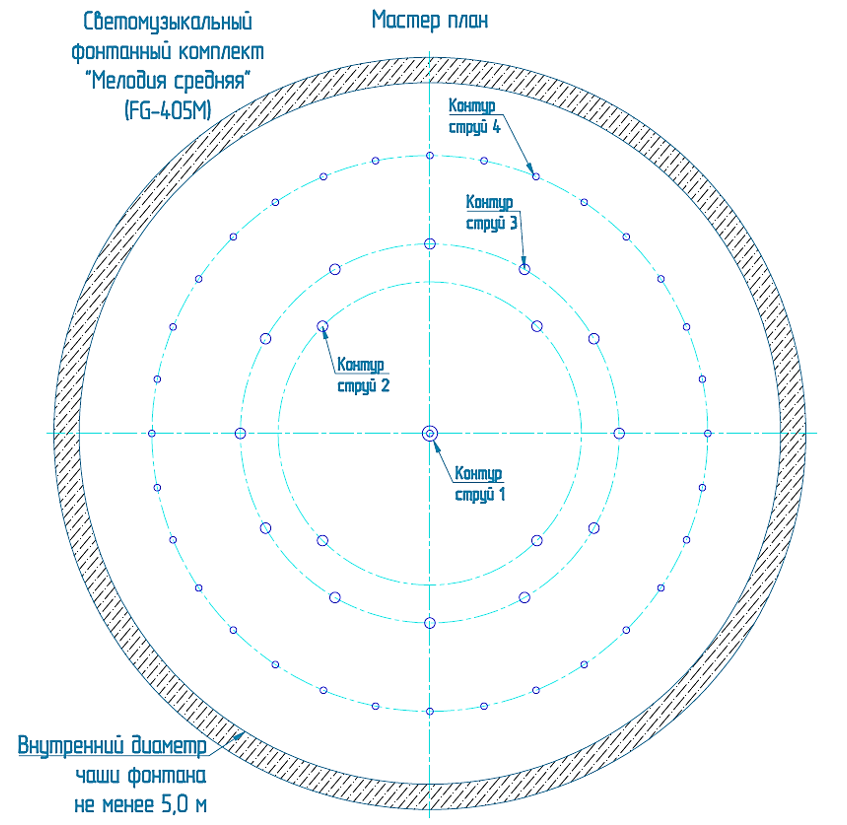 1. Внутренний ø чаши фонтана (чаша в комплект не входит) не менее — 5,0 м.2. Глубина воды в фонтане — от 500 до 550 мм.