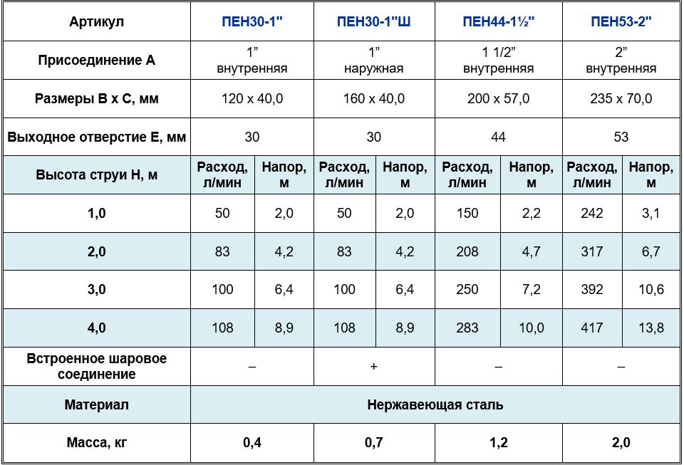 Насадка «Пенный столб» (Foam Jet Nozzle) создает живые и объемные водные картины. Пенная струя выгодно контрастирует с окружением. Эффект пены образуется путем смешивания воды с воздухом внутри форсунки при помощи встроенного шара. Пенящаяся вода особенно красиво выглядит с ночной подсветкой: струи, подсвеченные разноцветными огнями, оживляют обстановку и приковывают внимание зрителей.