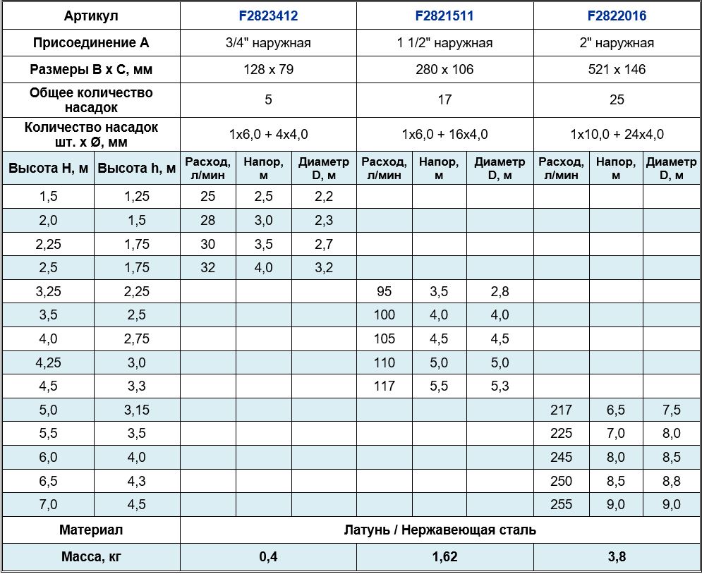 Высота струи max, м
